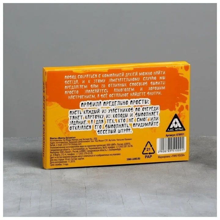 Купить игра для компании "фанты буханты" 20 карт от 100 руб. с доставкой до пункта выдачи в Печоре. Интернет магазин ДекаМаркет. Оплата при получении.