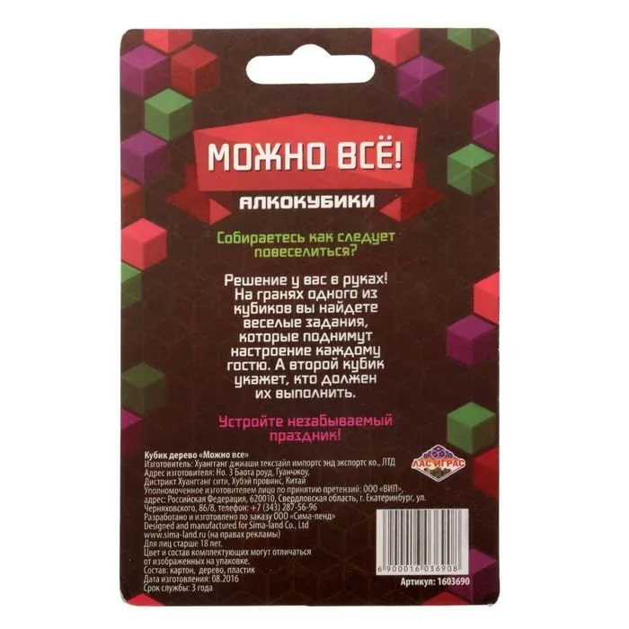 Купить кубик "можно все", алкокубики для принятия решений от 60 руб. с доставкой до пункта выдачи в Печоре. Интернет магазин ДекаМаркет. Оплата при получении.